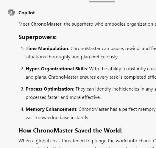 Create a superhero for me who is <your strengths>. Tell me about their superpowers and how they saved the world.