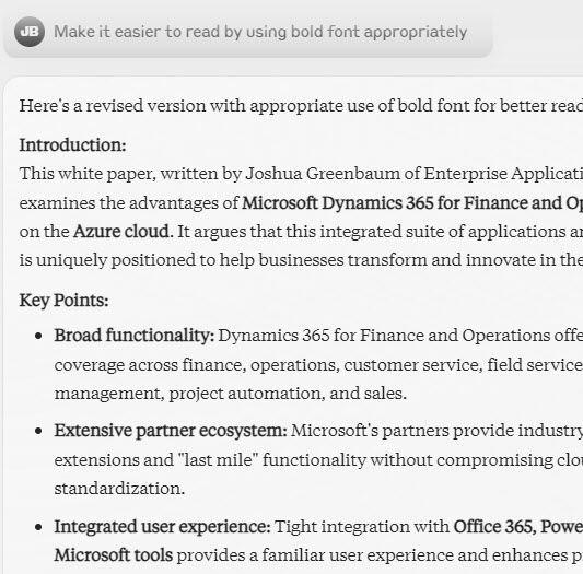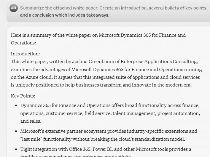 The capability of ChatGPT was amazing. I am on the regular paid plan of $20 per month, but I must have gotten a few thousand dollars worth of automated work from that platform. Perplexity is also amazing. Anyway, lots of interesting things are on the horizon, much more interesting than ERP systems like Dynamics 365 F&O!