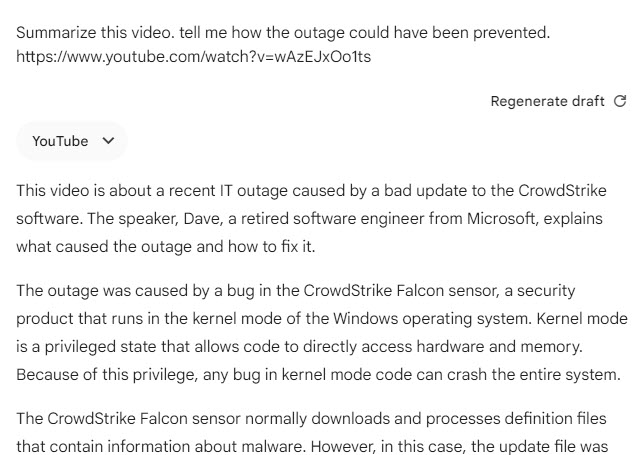 - Summarize this video. Tell me how the outage could have been prevented. https://www.youtube.com/watch?v=wAzEJxOo1ts