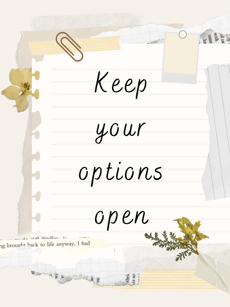 Disclosure: AI was used in several places in this post: to create the title, to create the outline, for ideas of uses. I used Canva for the “Keep your options open” graphic.