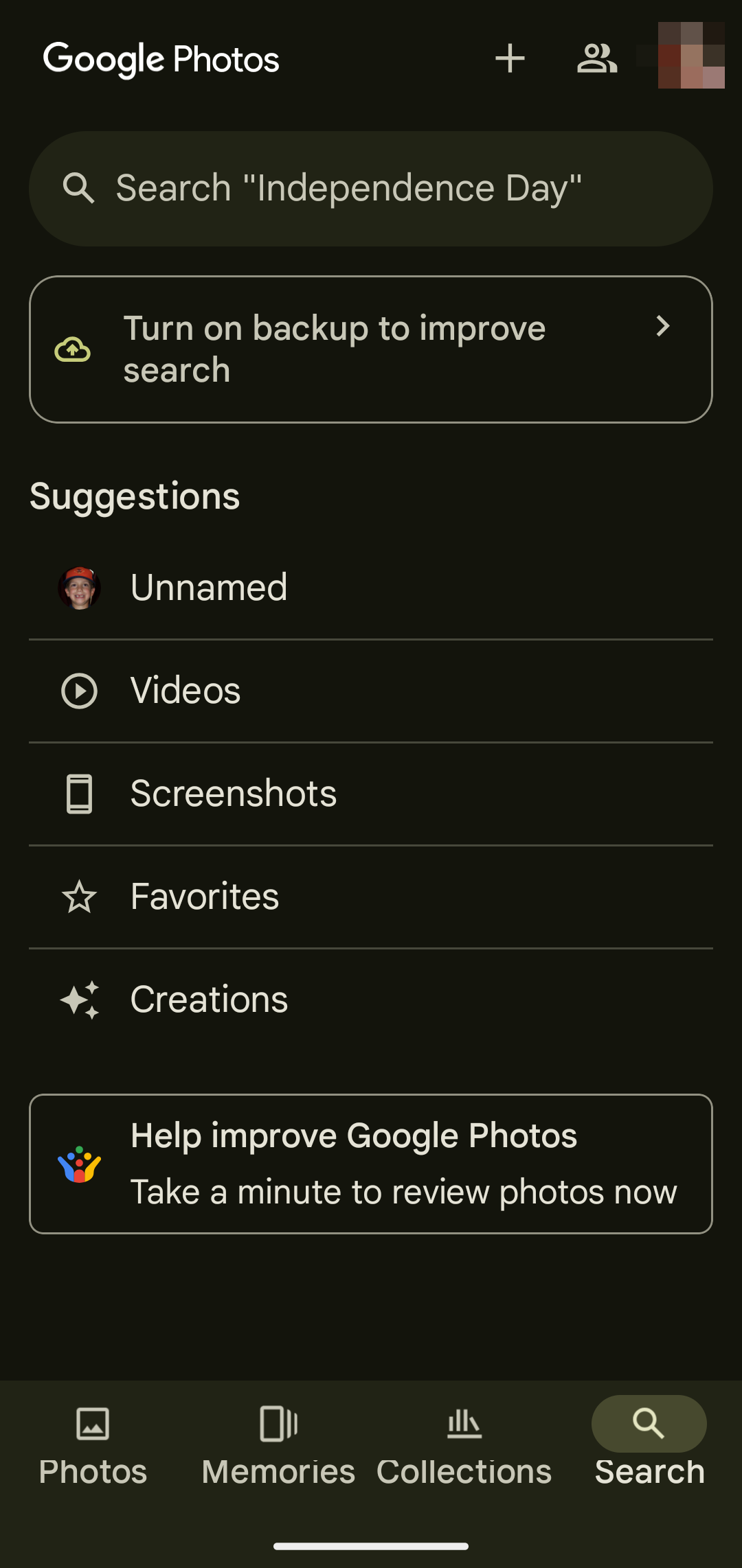 - Tap on the Search bar and try typing things like “beach,” “food,” or a friend’s name if you’ve tagged faces. Watch as AI sorts through your photos instantly!